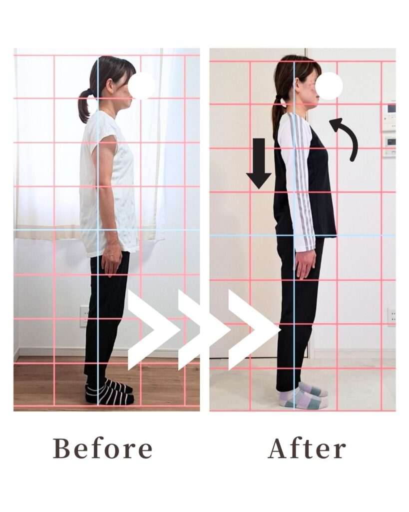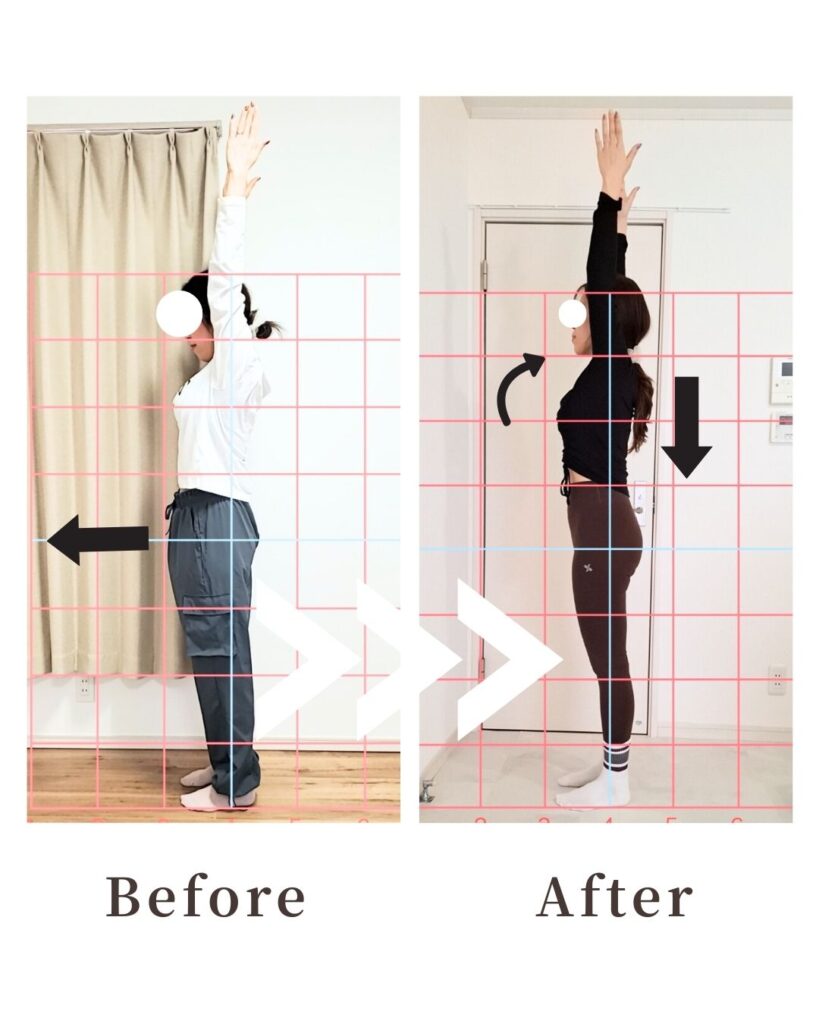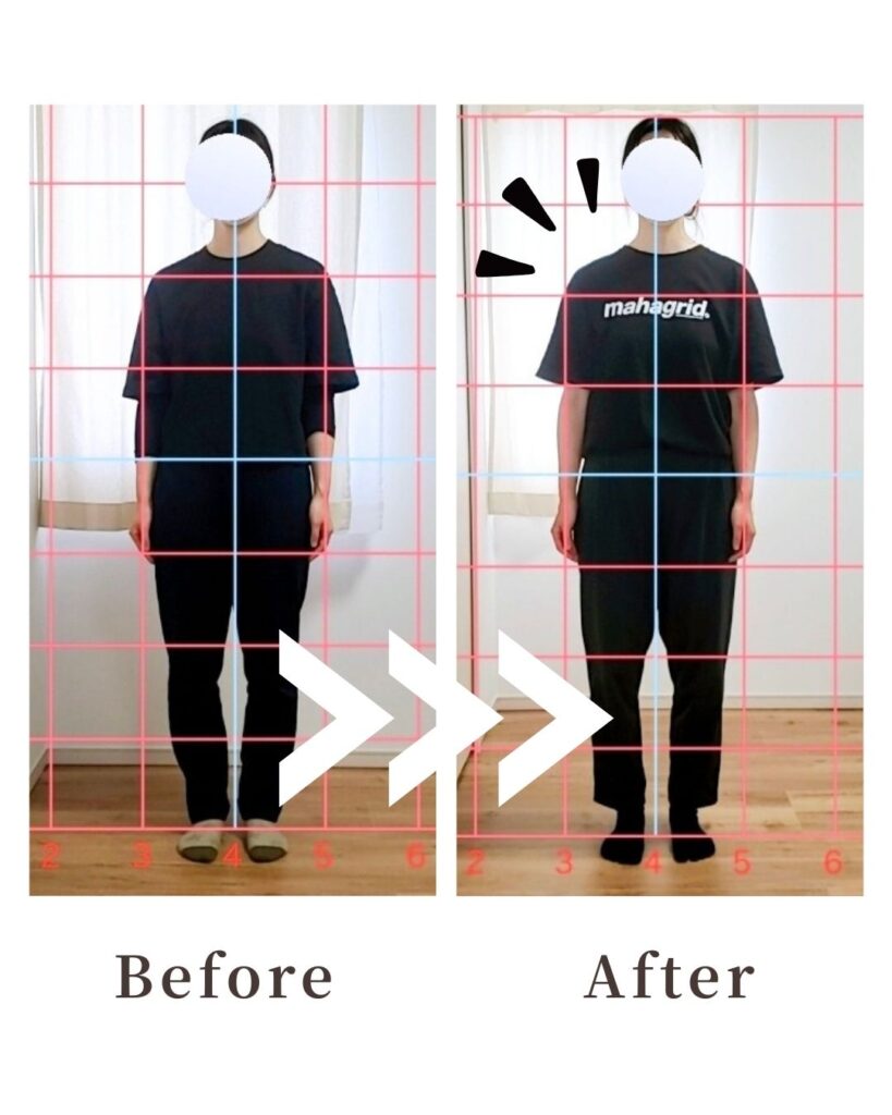 • 写真を再度撮ってレッスン前後の姿勢を比較します